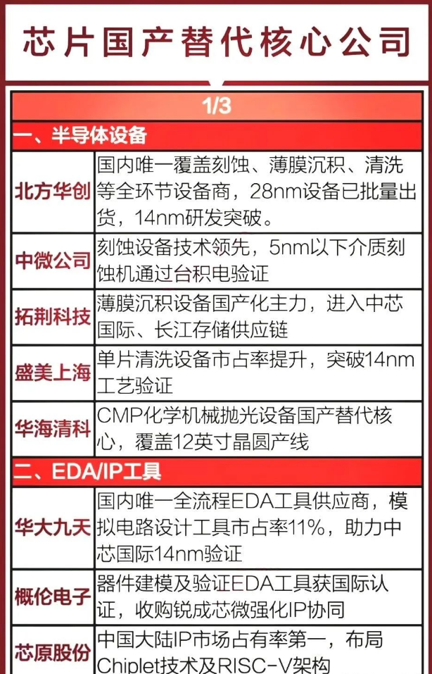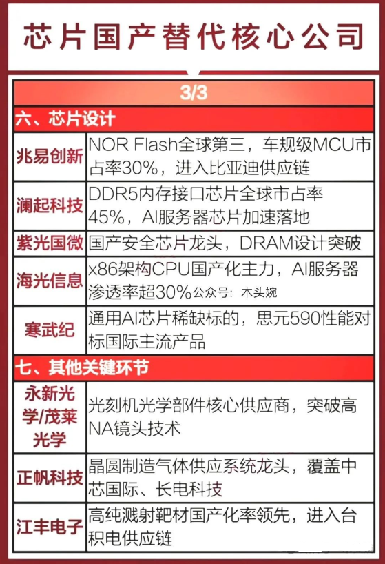 对于投资者来说,深入研究这些公司的核心竞争力和发展前景,有助于在投资中把握机会,实现资产的稳健增长,另外,我还芯片国产替代唯一性龙头名单梳理出来了,大家可以收藏研究: